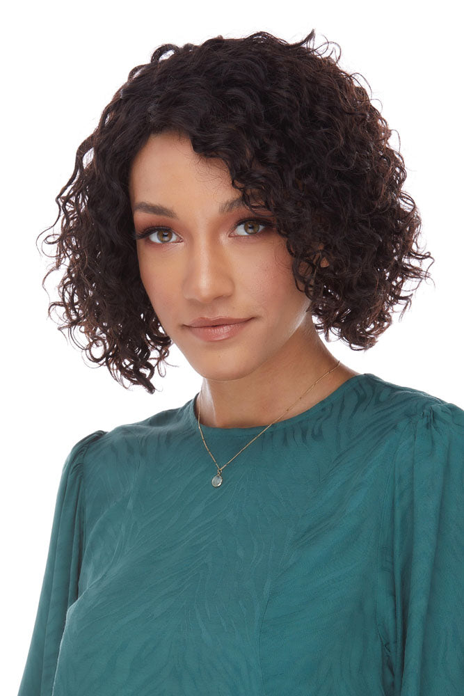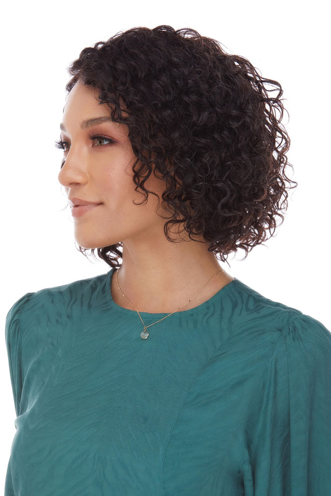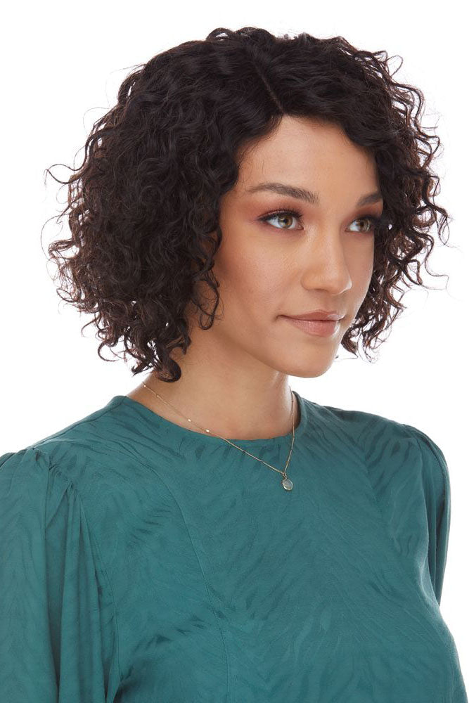 With a natural side part, this versatile style is complimented with a partial curl for a fun and lively look.