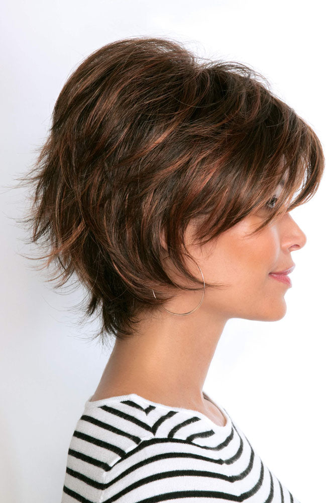 Sky from Noriko is a short-length synthetic wig. This straight ready-to-wear wig is a popular style and a best seller from Noriko. Sky has a flattering bob style with feathered layers and wispy ends. With thinned fringe, razored wispy ends and a voluminous bob style, this is an incredibly popular style. Sky's cap construction has adjustable tabs in the back nape area to allow a more comfortable fit. The result is a natural look that is both fashionable and easy to wear.