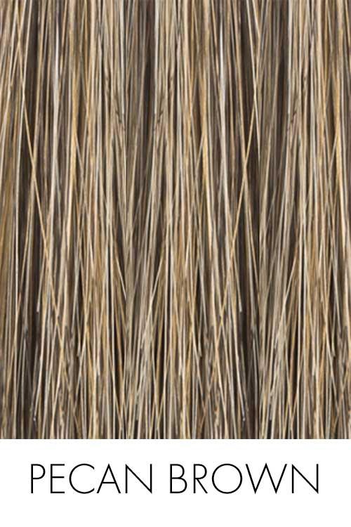 Butter Pecan-R | Dark rooted - Rooted dark with a light golden blonde base and evenly blended brown and medium auburn lowlights